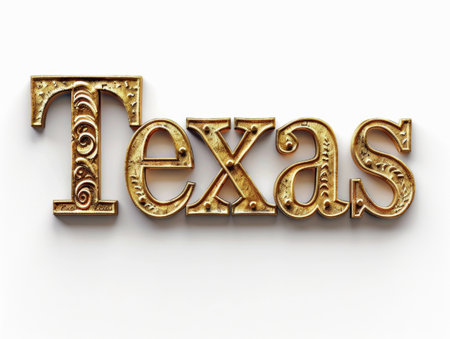 Golden Texas inscription on a white background. --ar 4:3 Job ID: 4b37cf9d-4684-43f1-966d-f718374a9f01
