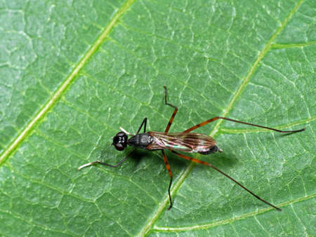 Stilt-Legged Flies on the leaves are insects that are small, slender.