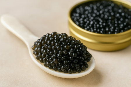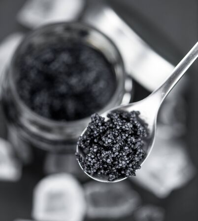 Portion of Black Caviar as detailed close-up shot; selective focus