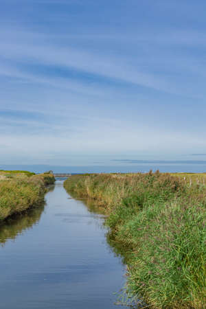 Tidal creek and sandy footpth next to it in the Slufter nature reserve on the Dutch island of Texel