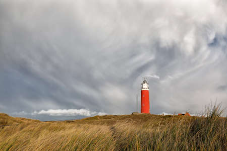 dramatic sky over ed lighthouse on hill, Texel, Netherlands