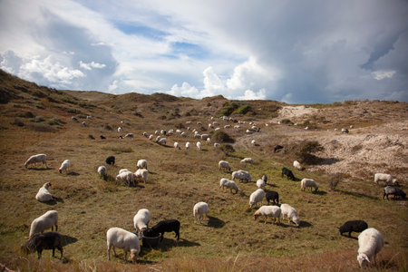 Flock of sheep grazing in the dunes near Bergen aan Zee in the Netherlands