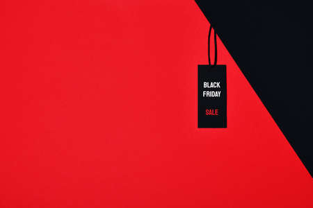Sale tag with Black Friday and Sale inscription on red and black background.