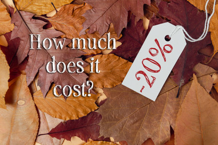 Pile of leaves with a tag that says 20 off. The leaves are brown and orange