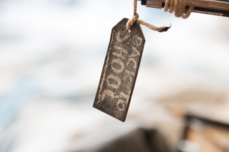 A rustic tag is suspended from a string, surrounded by a soft-focus background of blurred greenery and warm light, evoking a sense of calm and simplicity in nature.