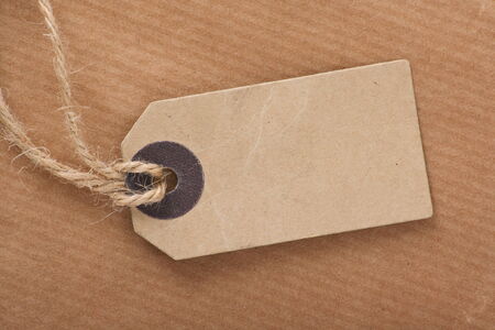 Brown Luggage Tag on Brown Wrapping Paper with Copy Space