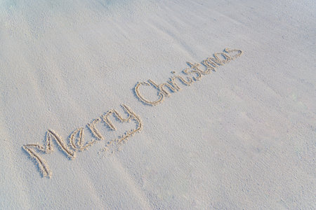 Merry Christmas title with an inscription in wooden cubes on a white background