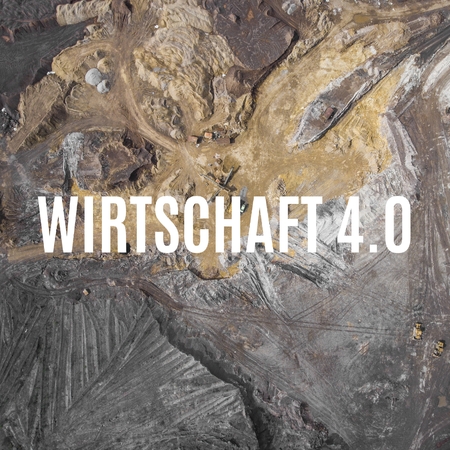 Word Industry 4.0 ( in german language ) over industrial places from above.