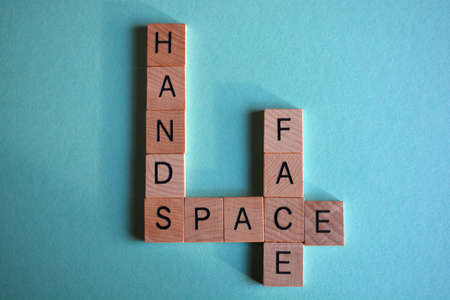 Hands, Space, Face, phrase to remind people to wash their hands, keep a safe distance and to wear a face mask during the Covid-19 pandemic.