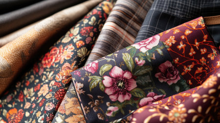 A captivating collection of vibrant fabrics featuring intricate floral patterns and various textures. Perfect for fashion design, crafting, and home decor projects.