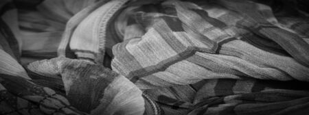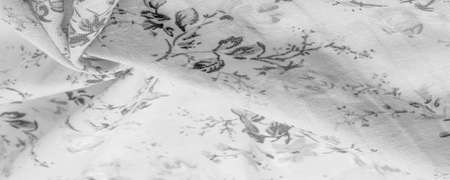 Background texture, Black and white silk fabric, silver. titanium. floral pattern, corrugation, reef, undulation, undulation, ripples, a small wave or a series of waves on the surface of the fabric,