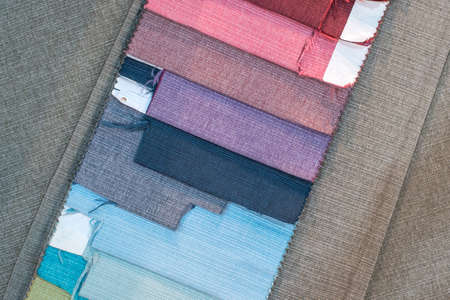Catalog of multi-colored fabric samples. Textile industry background. Tissue catalog