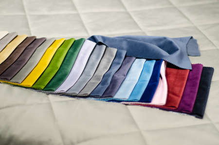 Colorful fabric samples. Fabric texture background. Textile Palette collection, close-up