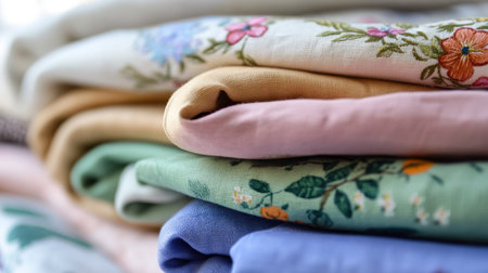 Pastel floral textiles layered for a cozy aesthetic, great for home decor or sewing projects