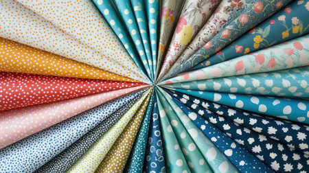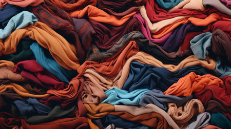 Bird s eye view of overlapping fabric layers showing diverse textures and vibrant colors