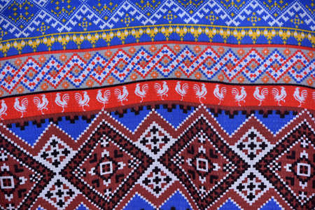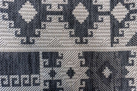 Close-up of a finely woven tapestry showing intricate patterns and textures. The craftsmanship of traditional national ethnic fabrics.