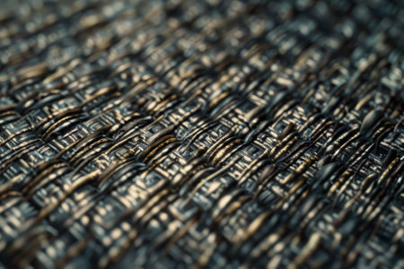 A macro image of fabric threads interwoven with precision, creating an intricate texture.