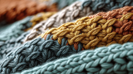 Close-up of colorful textile weave with intricate twisted yarn patterns. That the image is generated using AI.