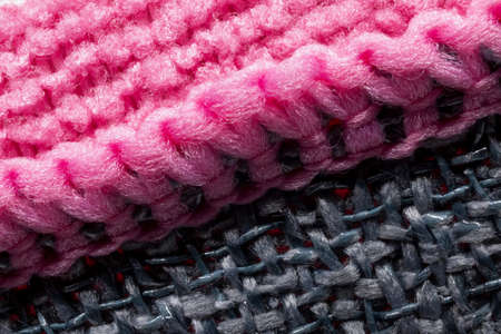 Extreme close up multicolored woolen fabric. Texture, textile background. Macro shooting