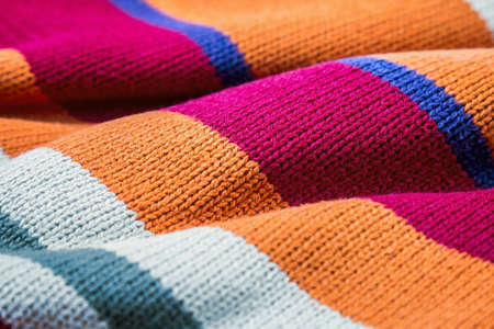 Kneat sweater texture close up. Knitted woolen sweaters. Close up. Selective focus. Multicolored wool yarn background. Close-up of knitting wool texture
