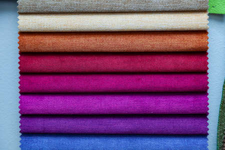 Closeup detail of multi color fabric texture samples. Material color fabric I am in spools of different colors.