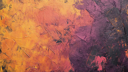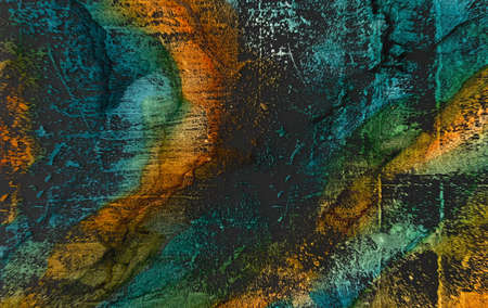 Top view of a rough textured abstract background in vibrant colors, with visible brush strokes and layers