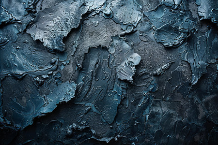 Highresolution image of dark blue peeling paint on a textured surface with cracks and flakes