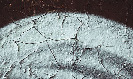 abstract creative grunge background: oil paint frozen on the palette after thinning, many cracks and peeling, short focus.