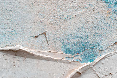 Beautiful blue wall texture close up with plaster, good construction background. Horizontal.