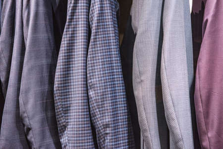 Elegant suits in a men clothing shop.