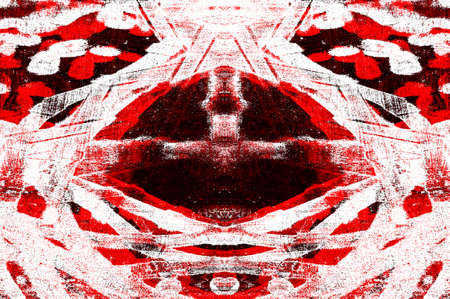 Red Black White Aged Grunge Wall Background. Old Weathered Peeled Painted Plaster Backdrop. Reddish Abstract Antique Cracked Stain Texture Background. Damaged Retro Stucco Scratched Pattern