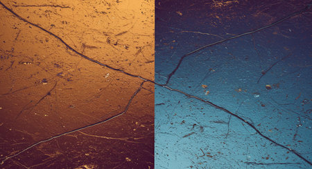 This detailed textured design presents an aged surface split into contrasting gold and blue hues, displaying a rough aesthetic with visible cracks for unique visual interest.
