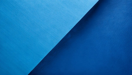 Abstract geometric background of two blue pieces of paper lying on top of each other with a shadow.