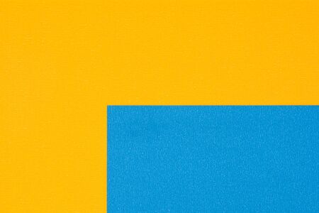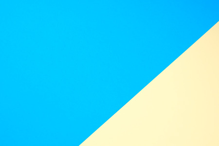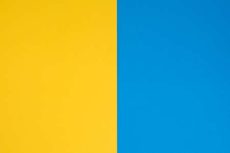 Yellow-blue or green-purple bright minimalist geometric background divided in half by a diagonal stripe. Abstract wallpaper. Colors of a Ukrainian flag. Colored paper template with place for text.
