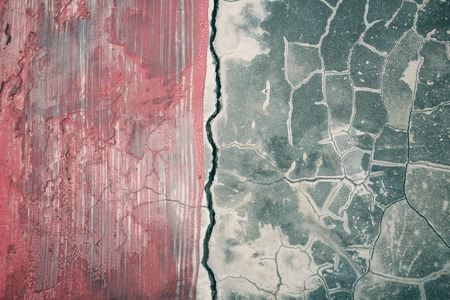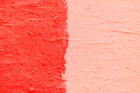 Red paint texture. Interior of a modern loft. Abstract bright background. The facade of an old house. Divided in half.