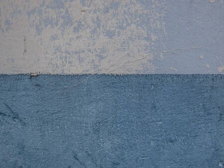 Fragment of the corner of the plastered facade of the building. Converging walls are blue and grey. The surface has a decorative texture. background.