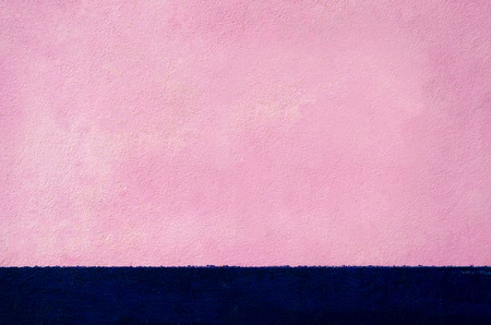 Old grunge pink stone wall and lower blue line texture abstract background. Copy space of horizontal architecture backdrop wallpaper.