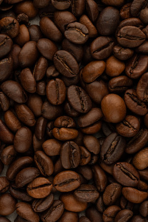 brown roasted coffee beans, background texture, close-up