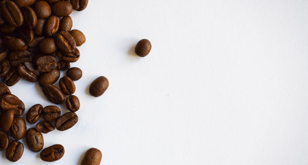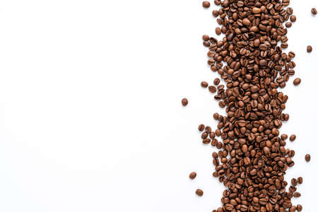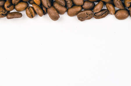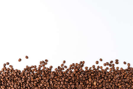 Coffee beans on white background with copy space for text.
