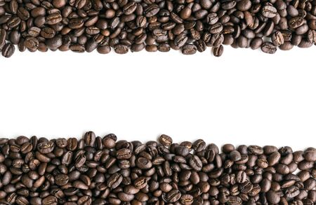 Coffee grains on a white background. Coffee frame