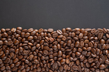many grains of roasted coffee, texture, background for text, for