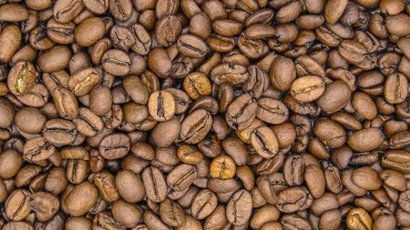 Roasted coffee bean pattern texture background. Raw food material.