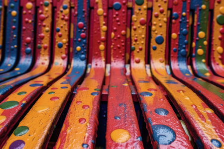 raindrops on freshly painted bench, vibrant colors, created with generative ai