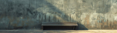 A high-resolution image capturing the raw textures of a weathered concrete wall complemented by a simple modern bench. This image is perfect for conveying themes of aging, texture contrast, and minimalist urban design.