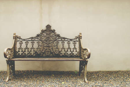 Vintage wooden bench on stone background