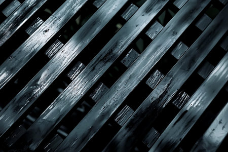 This image features dark wooden slats arranged in a dynamic pattern, showcasing texture and depth. An ideal choice for backgrounds and design themes.