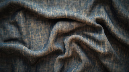 A closeup view of the crumpled denim fabric beautifully showcasing its rich blue tones and intricate details