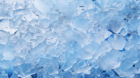 Ice cubes form a layered texture, showing their clarity and cold aesthetics in close-up.