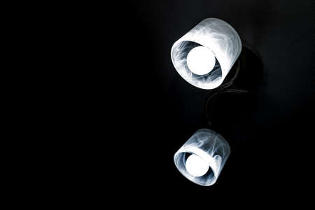 Two lamps with light bulbs Shine on a black background. Lighting in the house