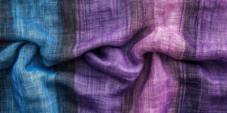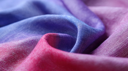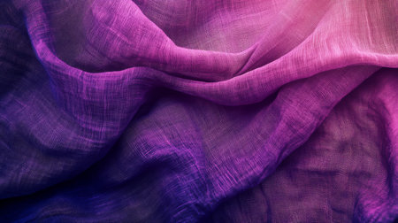 A detailed close-up of colorful fabric showcasing soft waves and gentle creases in vibrant shades of purple and pink, perfect for art and design projects.